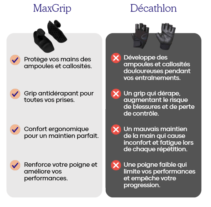 Protégez vos mains, gagnez en force et profitez d’un confort absolu avec MaxGrip™.